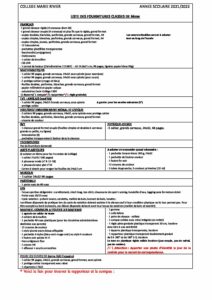 Circulaires d’informations et listes de fournitures scolaires 2021/2022
