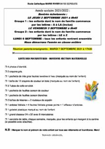 Circulaires d’informations et listes de fournitures scolaires 2021/2022