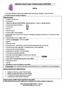 Listes de fournitures scolaire et informations de rentrée