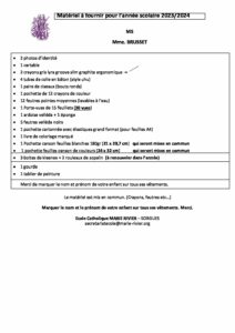 Listes de fournitures scolaire et informations de rentrée