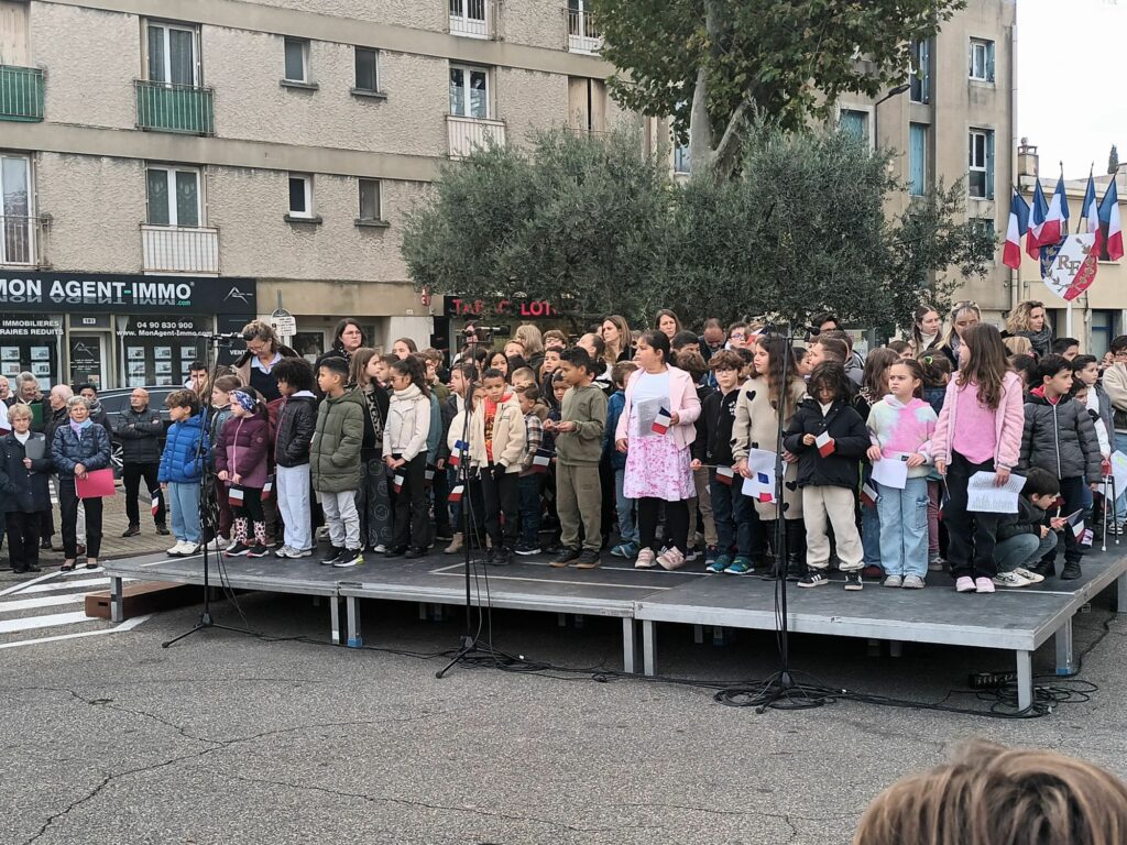 Le mardi 11 novembre 2025, plusieurs élèves de l’école Marie Rivier ont participé avec émotion et fierté à la cérémonie commémorative du 11 novembre organisée à Sorgues, en hommage aux soldats morts pour la France.
