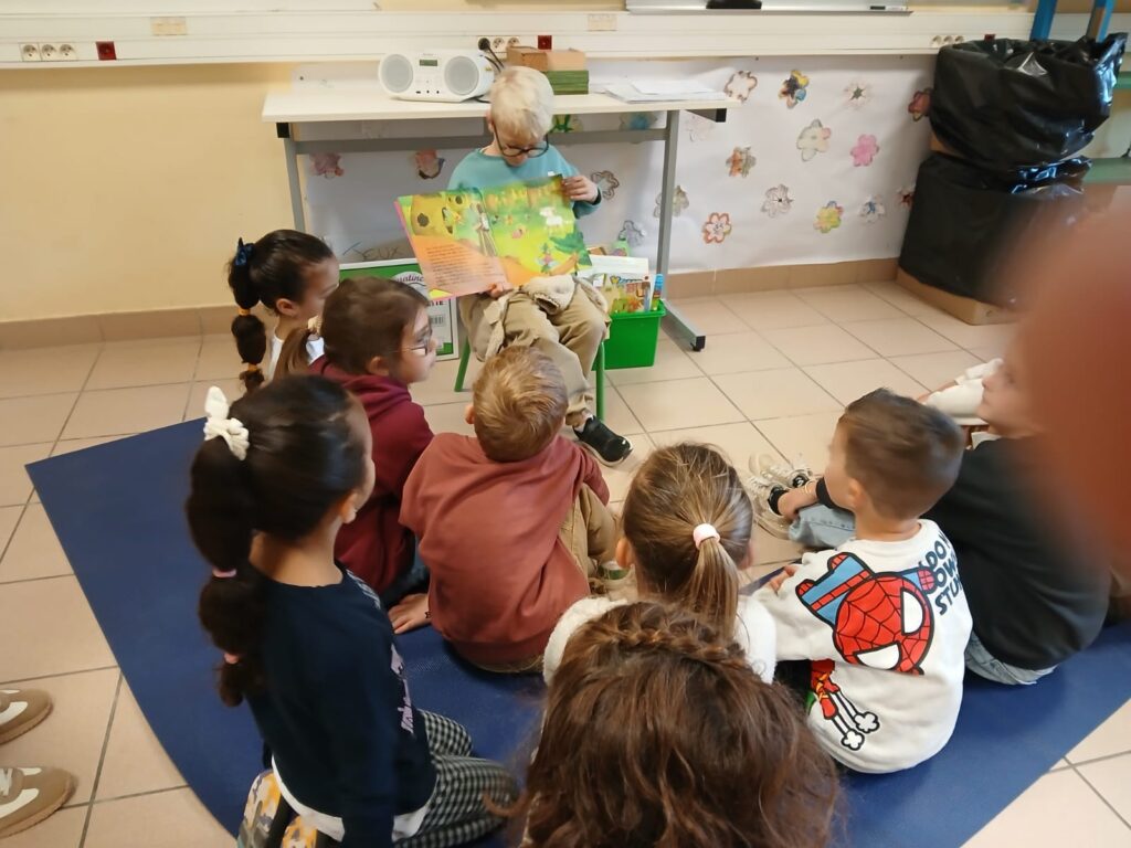 Un moment de partage intergénérationnel a eu lieu, où les grands ont lu aux plus petits, favorisant l’échange et l’engagement autour des histoires.