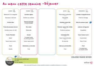 Menus du mois de Mars 2021